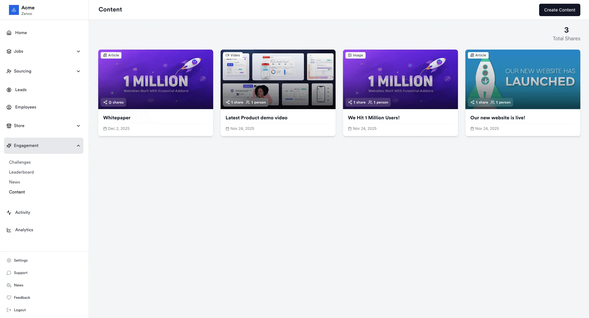 A powerful way for employees to amplify company stories authentically, while admins drive employer branding with measurable reach and full control.