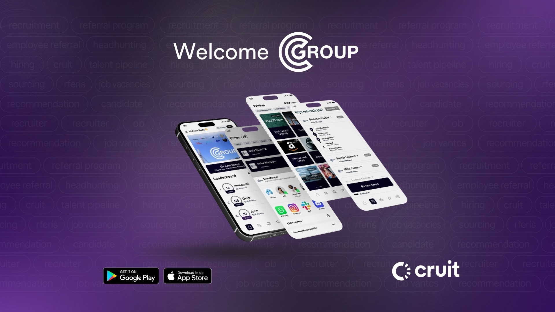 Cruit is het platform voor loyaliteit, referral hiring en employee advocacy. Organisaties gebruiken Cruit om medewerkers te activeren, betrokkenheid te versterken en talent aan te trekken via één centraal platform.